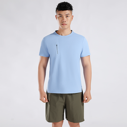Chest Zipper Pocket for Outdoor Running and Fitness, Breathable Solid Color Men's Short Sleeves