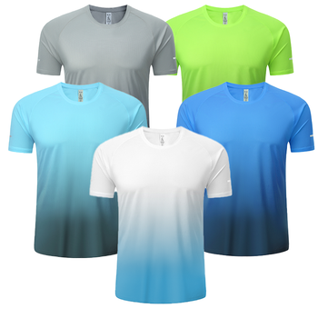 Camiseta esportiva masculina com logotipo personalizado de alta qualidade, roupa esportiva de poliéster de secagem rápida e tecido estampado para academia, moda esportiva ativa